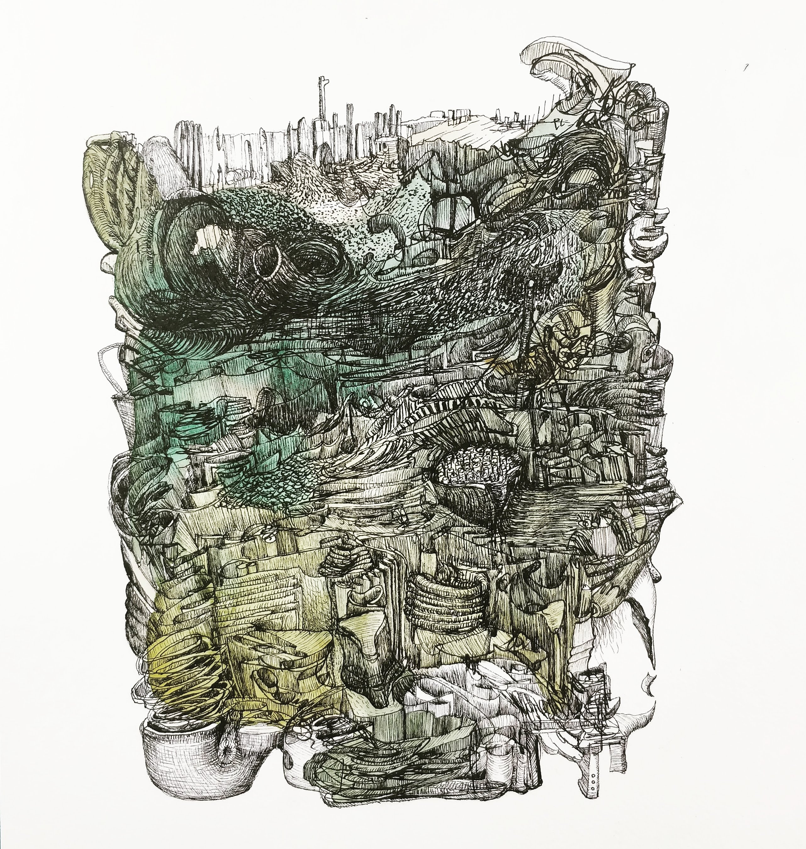 Watercolour and indelible ink on paper